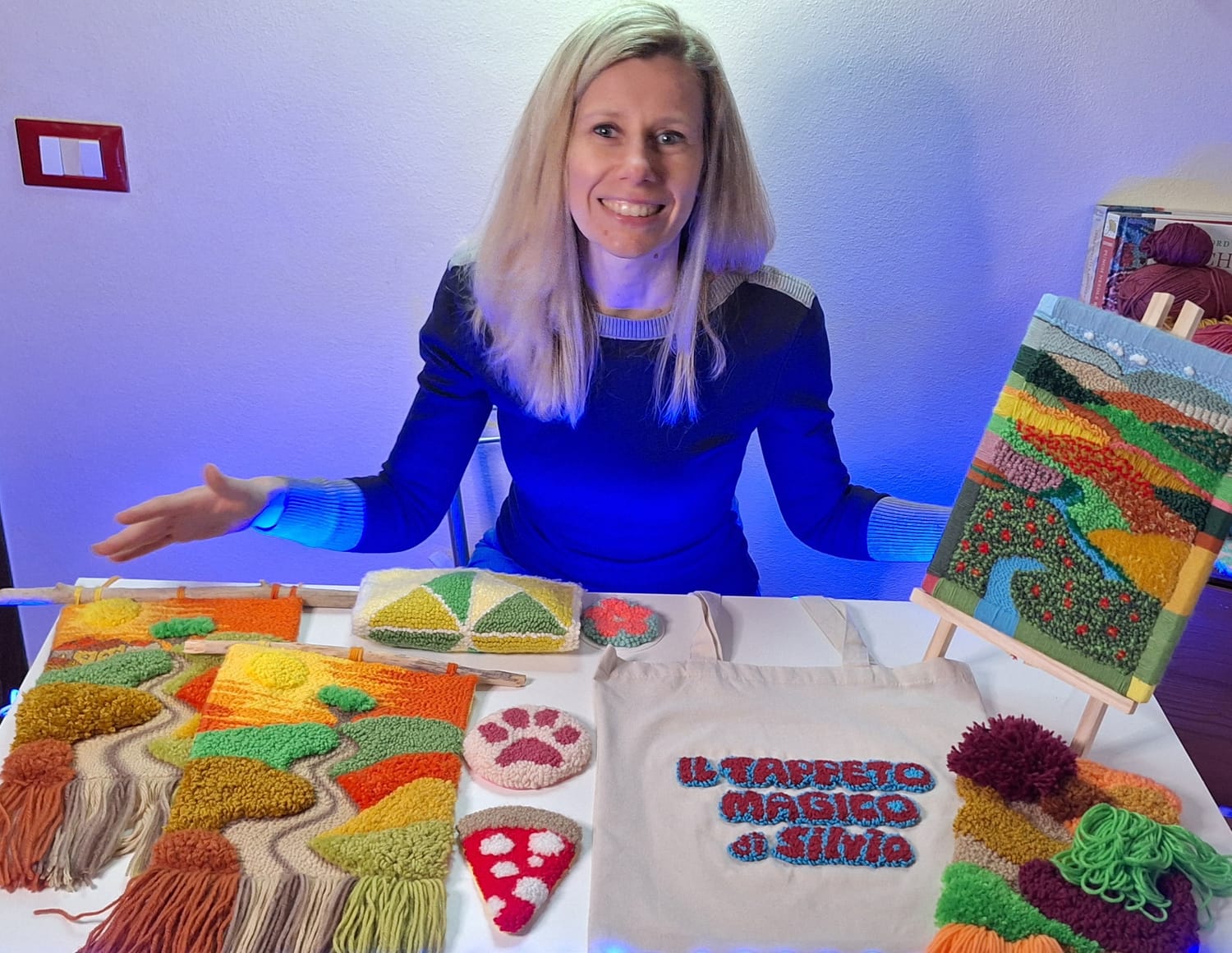 La qualità dei materiali si vede subito nel risultato finale. L’Ago Magico è il protagonista, ma contano moltissimo anche filati e tela: il filo deve essere adatto a creare una superficie uniforme e compatta, e la tela deve restare tesa “come un tamburo” per mantenere i punti ben saldi.