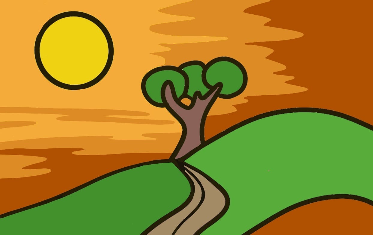 Il primo passo è scegliere un disegno e trasferirlo sulla tela in modo preciso. Ti farà da guida durante tutto il lavoro e ti aiuterà a separare le aree con chiarezza (ad esempio colline, alberi, cielo), soprattutto se vuoi lavorare con altezze diverse.